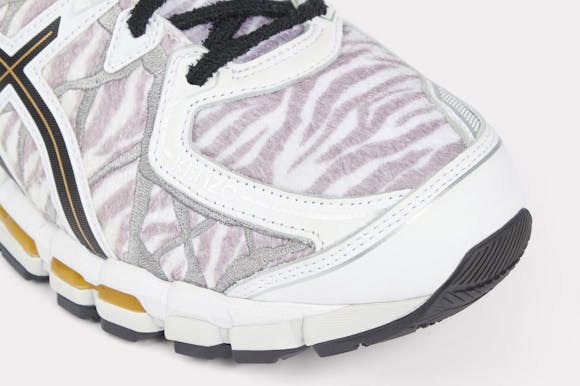 KENZOのカラフルな伝統とアシックスの卓越した技術力を組み合わせたコラボレーション。1993年にアイコニックなシューズの最初のバージョンを考案したデザイナー、榧野俊一にちなんで、Kayanoと命名されました。2013年に発売されたGel-Kayano 20 は、構造的な衝撃吸収性と高い安定性を備えたシューズです。完璧なフィット感、より効率的で安定したストライド、優れたクッション性、抵抗性と耐久性を特徴としています。このスニーカーは 'KENZO Tiger' グラフィックからインスパイアされ、強いファッションステートメントに変身させました。全面にはフェイクファーをあしらっています。